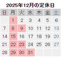 - 2025年12月のお休み