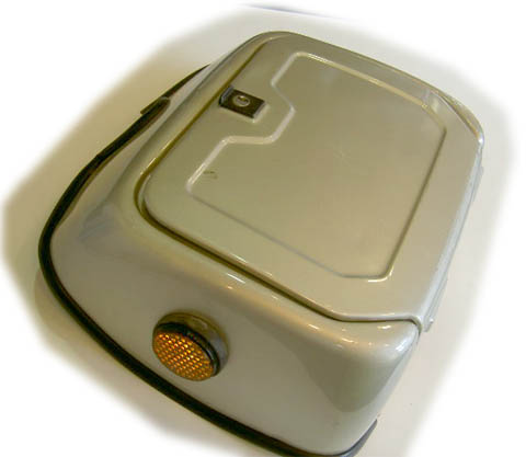 ■Bajaji フロントボックス 価格 14500円 インド・Bajaji社製 新中古品です。鍵・取り付けボルト付き VESPA P/PX用 イタリア製ベスパのノーマル・ボックスに比べ容量が大きくなっています。 またフラップを開けた際、開口が広くフラップが真直ぐになります。 ボディーと同色に塗装されると違和感なく使用できます。 サイドにあるリフレクターは取り外し可能です。 |