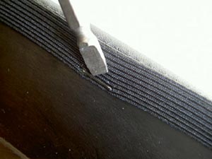 ■シートカバーPX-FL2用 グレー 価格:6800円 純正シート・メーカーの皮です。 ご自分でも張替えできます。 張替え後の質感やフィット感は純正の方がいいですよね。 ★張替え方法 @シートの皮はホッチキスのような物(タッカー)で止まっています。細いドライバーなどで抜きます。 A古いシートの皮を剥がし、中のスポンジを乾かしましょう。 Bホームセンターでタッカー(1500円〜)を購入します。 Cシートカバーをシート本体に被せていきます。 シワにならないように注意! Dタッカーを使ってシート本体と皮を固定します。 E付属で付いているベルトも交換しましょう。 |
