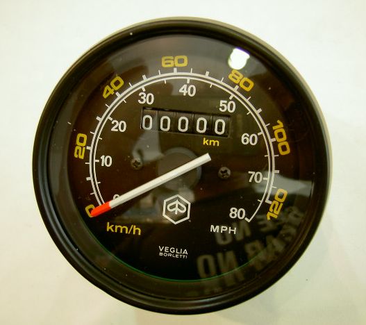 ■P用メーターVEGLIA 価格 19050円 SOLD-OUT 純正・P125-150-200用 イタリア・VEGLIA社製 キロ/マイルの2重表示 |