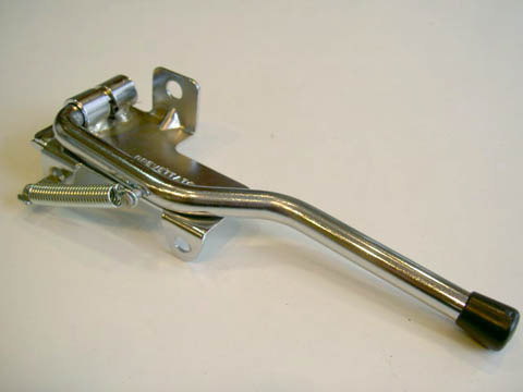 ■ジッピー・エンジンスタンド PX用 価格 5860円 SOLD-OUT VESPA P/PX 125/150/200用 パンク・エンジンのメンテナンス時に使用します。 ボルト2本で固定します。 取付けは簡単です。 ←スタンドを使用してタイヤを浮かせた状態です。 センタースタンド+ジッピースタンドの3点支持なので安定します。 ★セル付き車はスタンドがウインカーの電球ホルダーに干渉しますので、ゴムバンド等でスタンドをバタ付かないように固定してください。 |