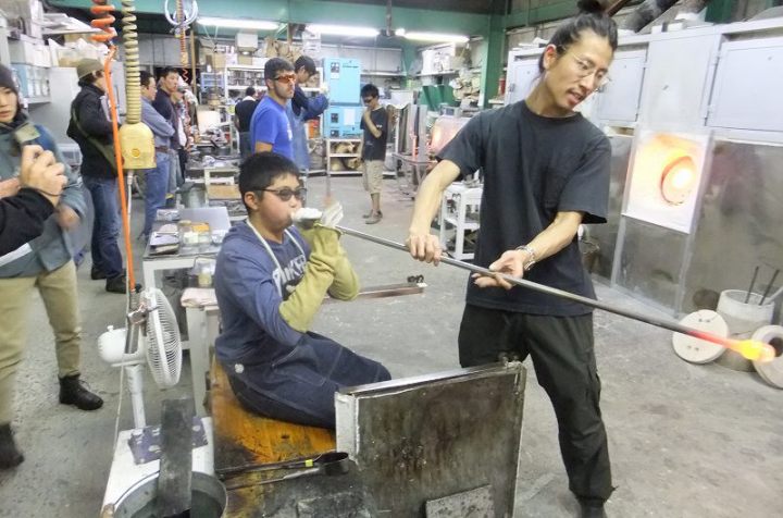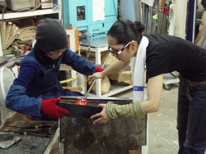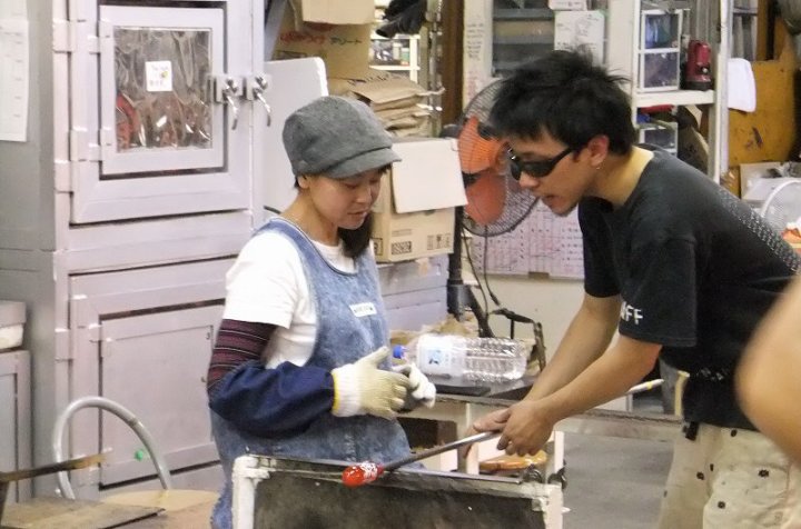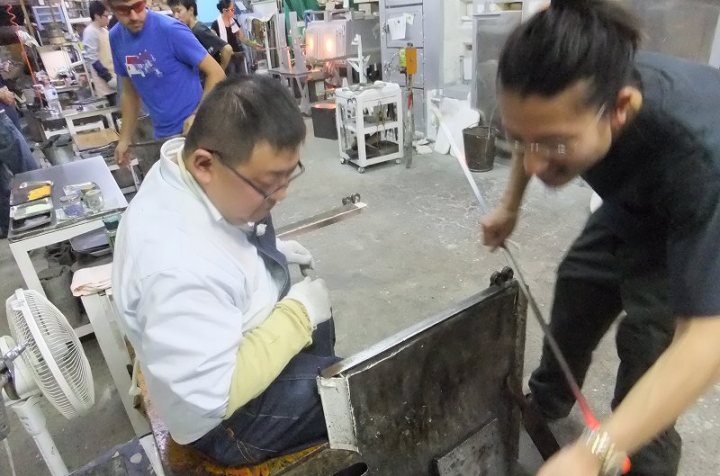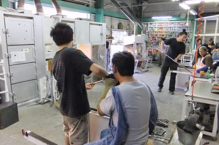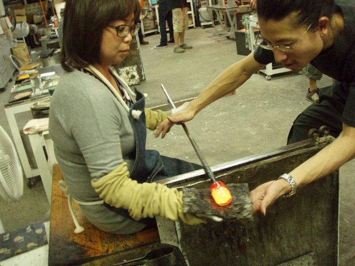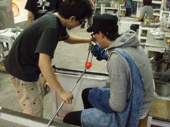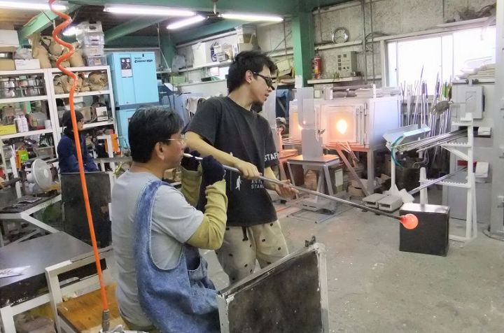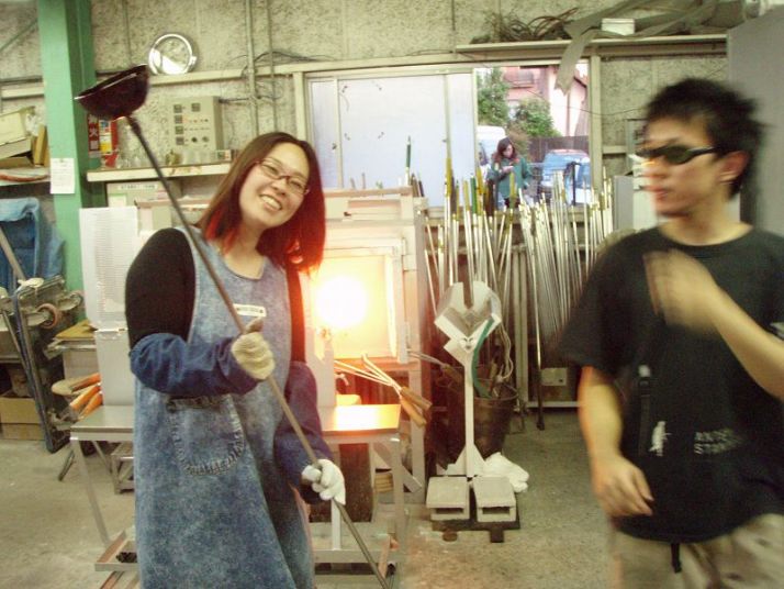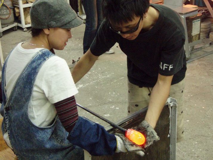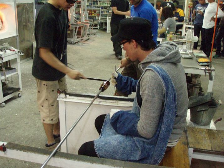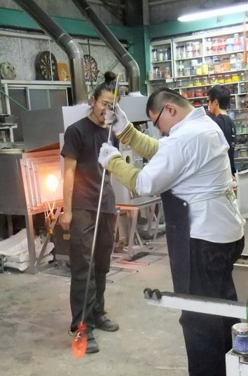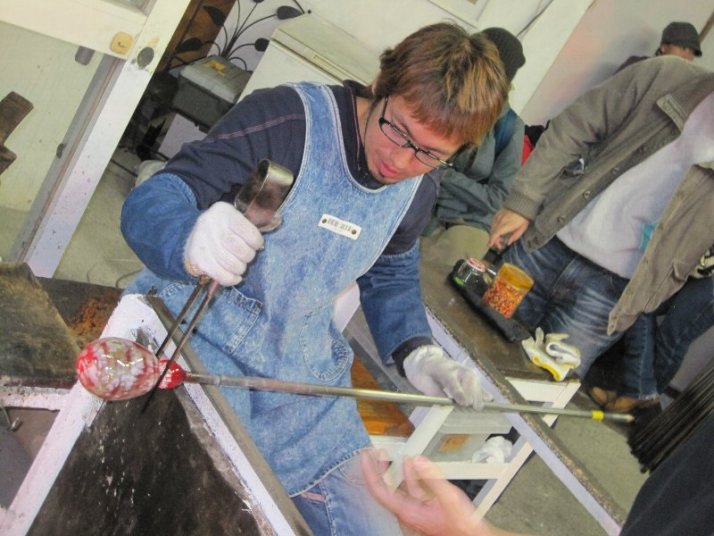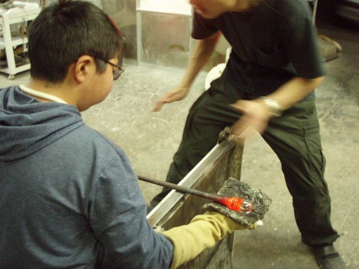 | 吹きガラス体験 | 最初にベースになるガラスの色を選び、デコレーションしたい色を指定します。色の種類がたくさんあって選ぶのに一苦労! 次に作りたいデザイン・形状をスタッフの方に伝えて作業が始まります。 スタッフの方は最初から親切に指導してくれて、またガラスの特性も学びながら体験できました。しかし、作業はガチですよ!! |