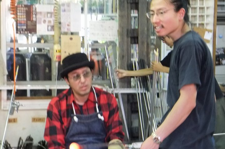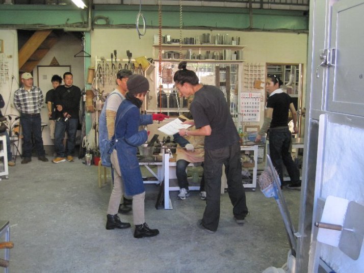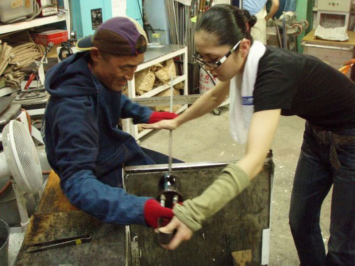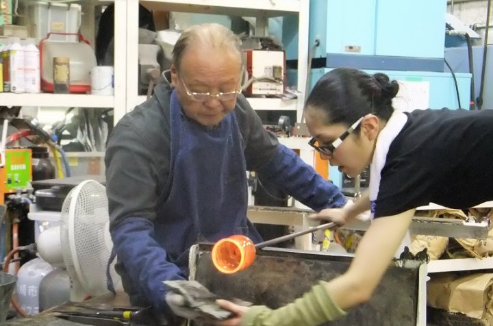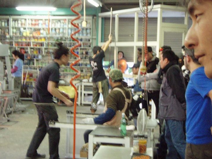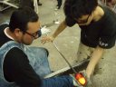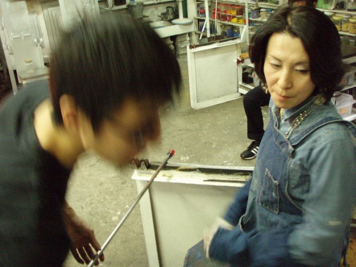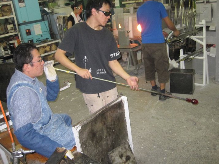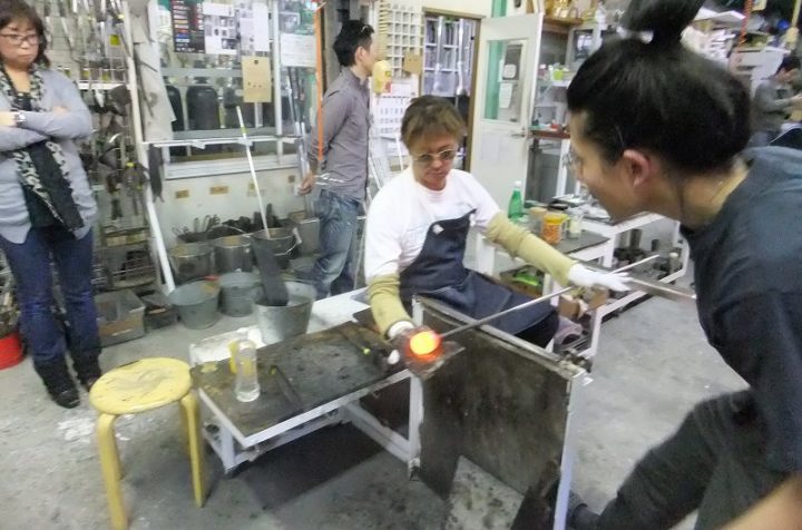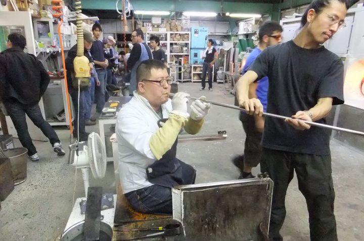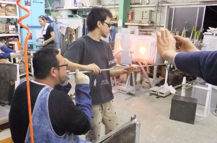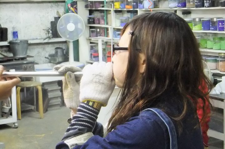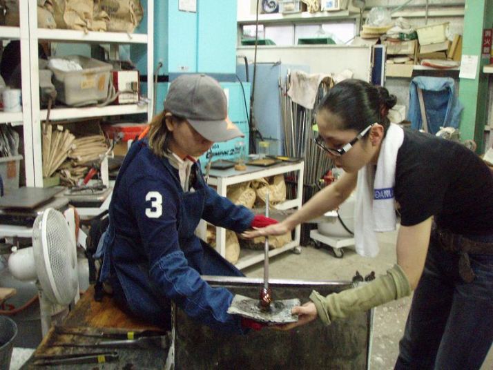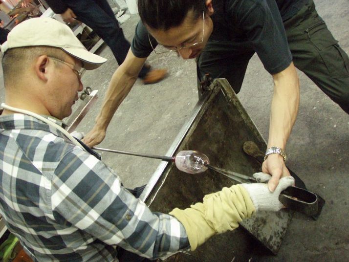 | 吹きガラス体験 | 最初にベースになるガラスの色を選び、デコレーションしたい色を指定します。色の種類がたくさんあって選ぶのに一苦労! 次に作りたいデザイン・形状をスタッフの方に伝えて作業が始まります。 スタッフの方は最初から親切に指導してくれて、またガラスの特性も学びながら体験できました。しかし、作業はガチですよ!! |