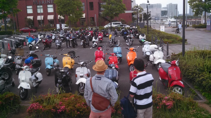 ■ 今回はランナーとベスパの2つのツーリングを同時に開催しましたので、ワンオペで対応しました。 常連のお客様に大変お世話になりました。 ありがとうございます・・ ■ 赤レンガ倉庫までは国道15号で一直線・・簡単なルートでした。 ■ 赤レンガに集合した時点で、スクーター17台・20名の方にご参加いただきました。 大所帯です!! ■ 「フィッシャーマン・マーケット」のビュッフェを堪能したのち、元町→港の見える丘公園を通過する予定でしたが、 ホコ天で元町通過が出来ず、17台のスクーターが右往左往・・・変な風に目立ってました。皆さんすいません・・ アウトレット横浜ベイまで40分の道のり お茶する人、買い物する人など・・思い思いに時間をすごしました。 帰りはコスモワールド前を通り抜けて国道15号を走り、都合の良いところで流れ解散しました。 ㈱ベスパ到着はPM5:00、心地よい疲れと楽しい思い出がいっぱい残った1日でした・・ 次回は秋ごろを予定しています。是非ご参加ください。 |