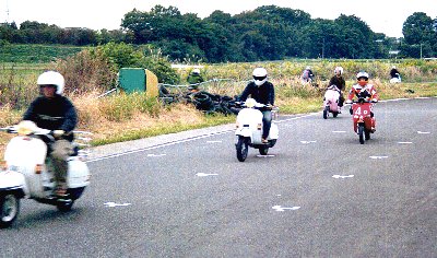 NS50あり、JOGあり、ベスパあり・・・コース整備しながら走りを見ていて、走りたくてしょーがないって言う気持ちがブレークしたようだ。