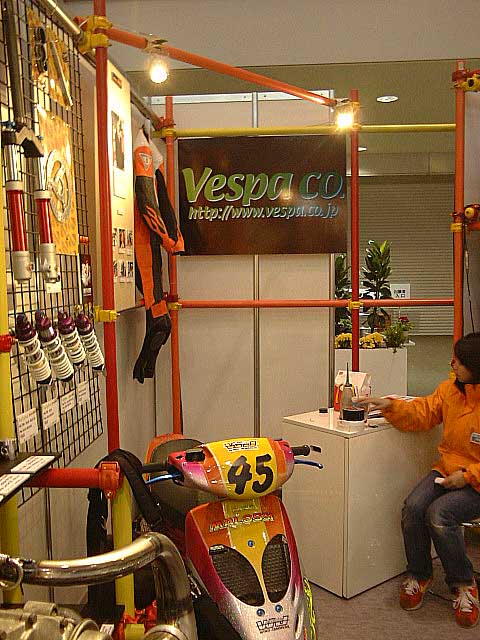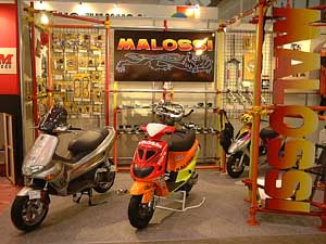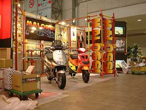 今回はMALOSSIから発売されている商品の中でも人気のある物・これからブレーク間違い無しのスクーターパーツを展示し、先週MALOSSIから届いた最新VTRを流しっぱなしにする、超COOLなブース!