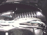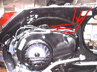穴から黒いヒダヒダ・ゴムを通って、キャブレターにつながっている。 何を隠そう、空気の通り道だったのです。 |