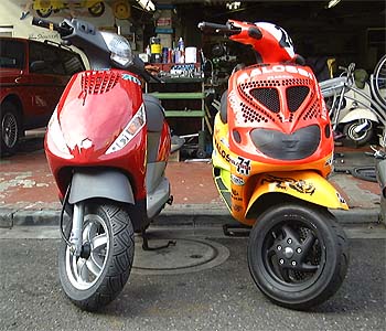 従って、小さくて、ハイパワーのスクーターと言う訳だ。小回りが効いて、車幅もスリムなので町中最速間違いなし!!