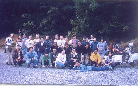 第2集合地点の地図が間違っていて、中途半端な所に集まっていた。そして、本当の場所に移動、ピンクベスパを除き、全員集合。10分後、最初のトラブル発生! 1台のベスパが突然飛び出し、信号待ちのベスパに追突、反動でベスパがウィリーしたまま暴れまわった。その場にいた人曰く、「フェラーリの跳ね馬を見たような気がした。」ときれいにまとめていた。目を閉じて思い浮かべたが、何かもっとカッコ悪いイメージしか浮かばなかった。その追突のせい?!なのか、ギヤーワイヤーが切れ、菊チャンがメンテに入った。そこで追突した人と連れの人は、ここで途中棄権した。そんなこんなしていると、ピンクベスパが追いついて来た。遅刻の原因は良く聞かなかった??が、多分寝坊!!でないと思う。