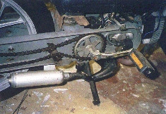 徹夜して作り上げた、PK125改。 スペック・・水冷135CC・自然循環方式・キャブはデロルト22MM(標高が高い所なので、小さなキャブを選択した。)・フライホイールはインローター・マフラーは、ケリーの自家製・ブレーキはそのまま使用・ハンドルはなんと150スタンダード用、何故ならPKのを使うとハンドルが高くなってしまうからとの事・タイヤは当然TT90GP、日本から送った物だ。 ベンチ・テストで、28馬力を計測した。 細かいスペックは、まだ開発中のエンジンなので内緒!!! |