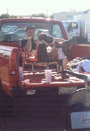 レース開催まであと6時間、まだエンジンに掛かりっきり、開催まであと3時間、そう朝の4時に完成した。3人共徹夜だった。その足でサーキット入りした。サンディエゴから4時間走った。すごく広いコースでビビッた。気温はははかってないが、Tシャツでも暑くて脱いでしまうくらい。