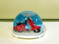 卵大のスノーボール。白い雪の降る様子が赤いベスパに映える。
