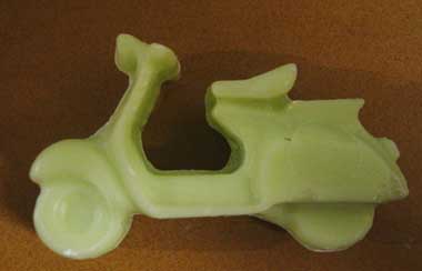 ベスパのフォルムをしている石鹸。石鹸ってとても繊細な物で、10個仕入れて原型とどめているのは、なんと3個だけ。香りは外国の3流ホテルにあるタイプの匂い、ご想像にお任せします。