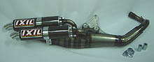 2サイレンサーマフラー なんとも不思議な形状のマフラーだぞ。 ユーロチャンバーみたいに見えるけど、ボディの真ん中辺から二本のサイレンサーがでている。 この形で静かな音のほうがよい人におすすめ。 PIAGGIO/GILERA 50cc用 35000円 sold-out |