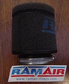 ラム・エアーパワーフィルター 24〜30mm用 PXにビックキャブを付けるとフィルターがボディーに干渉して外れてしまう。 このフィルターを使うと柔らかいので、干渉して外れてしまう事がない。 PHBL25〜PHBH30mmに適合。 4500円 |