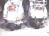 P/PX用・極太リアホイール・タイヤセット エンジンマウントの右を削って、左にスペーサーを入れて、左右のバランスをとる。 タイヤは、ミシュラン S1 130/70/10を使用。 ものすごい迫力が出る。超COOLなビジュアル系のベスパに絶対お勧め。 どんなマフラーにも取り付け可能 左がノーマルタイヤで、右が極太タイヤ・・スゴイ違いでしょ。 タイヤ・リム・取り付けキットのセット・29800円 SOLD-OUT S1・130/70/10タイヤのみ・9800円 |