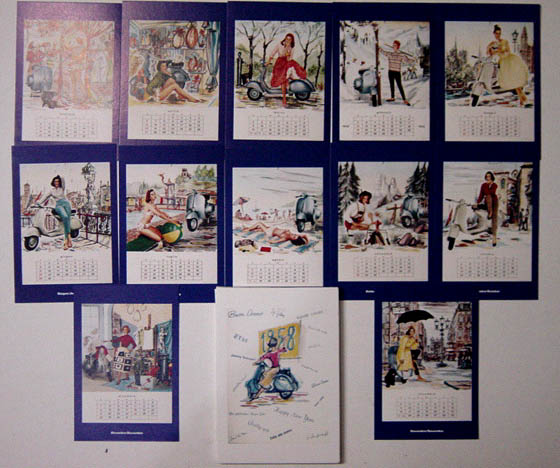 ピアジオのカレンダーがポストカードになった。 1年12枚セットで、ここに出ていない年もあり。
