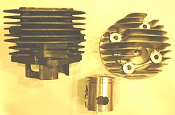 50s用 102ccキット アルミシリンダーを採用しているので、放熱性に優れている。ヘッドのバリをとるように。 メインジエットは82番に交換すべし。 23000円 スペアーピストンリング2本セット・4000円 |