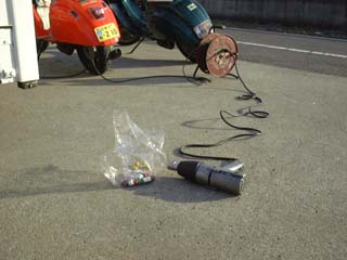 そこで、ウエイトローラーの交換をして再スタート、これを何回も繰り返した。寒風吹くサーキット、僕らとあと2人しかいない。しゃがみこんでCiaoをいじくっていると、しんみりして来て、僕ら何かヘンな人達?!と思ってしまう。